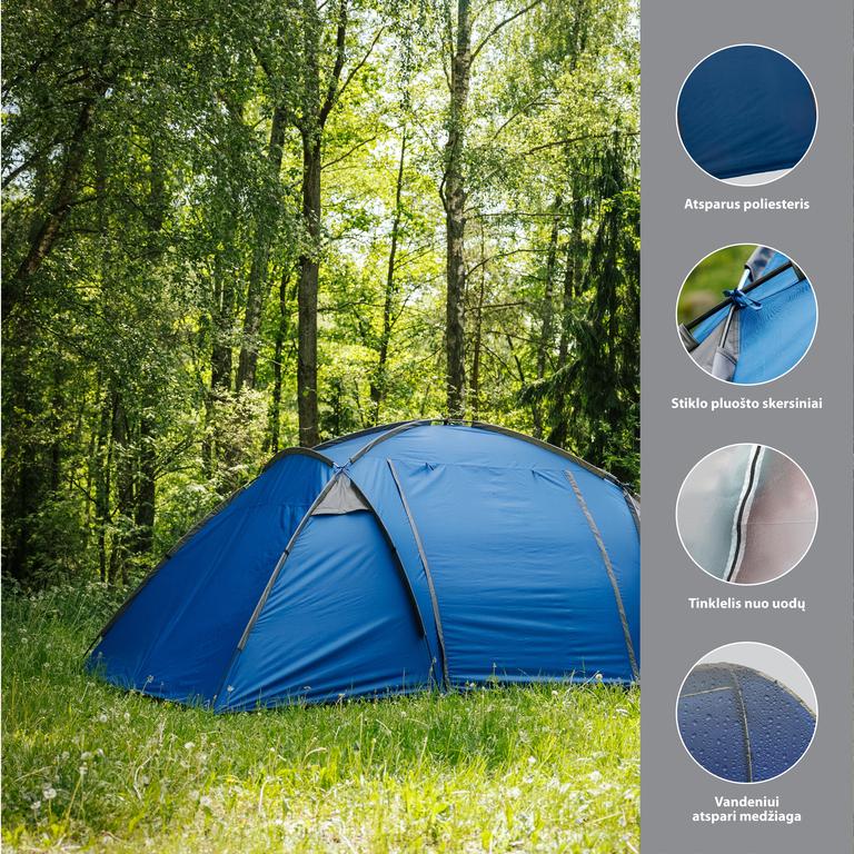 ramybe ir sauguma gamtoje, leidžia megautis laisvalaikiu gryname ore be rupesciu. Kadangi ši palapine turi stiprias dvigubas